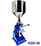 KDH 50 Kolbendosiermaschine handbetätigt. Für alle flüssigen, dickflüssigen und leicht pastösen Produkte. Link zu Prospekt. Piston filling machine, manually operated. For all liquids, high-viscosity and soft paste products. Link to catalogue. |