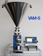 VAM-S Vario-Abfüllmaschine, motorgetrieben, mit Zellenrad- Abfüllkopf für pulverige und körnige Produkte. Link zu Prospekt. Vario-filling machine, motor- driven with rotary feeder filling head for all powdery and grainy products. Link to catalogue. |
